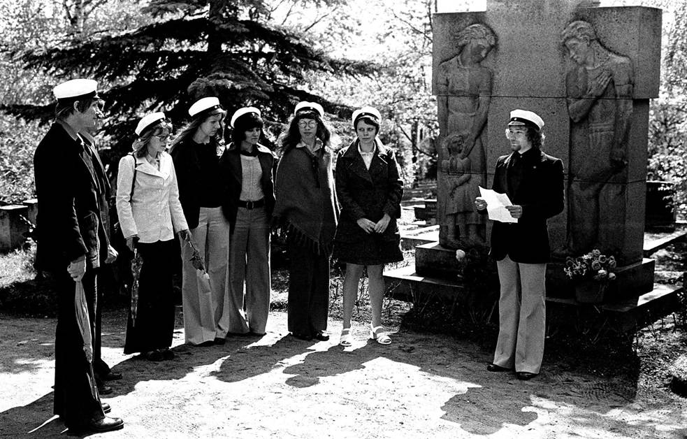 Ihmispaljous Jorma Johteisen ja Kalle Lahtisen muistotilaisuudessa Kalevankankaan hautausmaalla kuvastaa mielialojen nopeaa muutosta sodan jälkeen: puoli vuotta aikaisemmin oli sodittu Neuvostoliittoa vastaan, nyt ihmiset osoittivat kunnioitustaan sotapolitiikkaa vastustaneille maanalaisen vastarinnan aktivisteille. (Kuva: Kansan Arkisto)