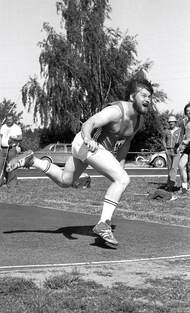 Keihäänheittäjä Seppo Hovinen TUL:n yleisurheilun mestaruuskilpailuissa Nokialla v,1975.