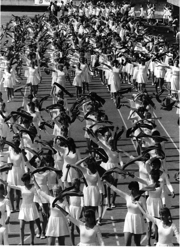 Naisia TUL:n 65-vuotisjuhlissa Tampereella 17.6.1984. TUL 84-marssi päättyi Ratinaan. Juhlat vetivät paikalle 25 000 osanottajaa.